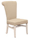 The chair features a fully upholstered seat and seat back and solid wood frame and legs